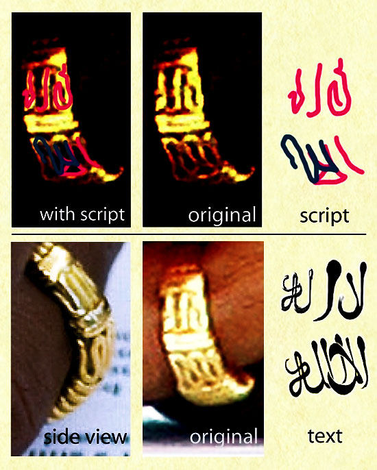 The exhibit below shows how the Arabic inscription fits over the two parts of the Obama ring.